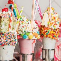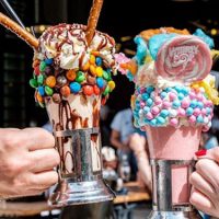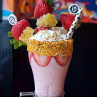 9種類あるシェイクに関しては、ぜんぜん派手ではない普通のクラシックシェイク(バニラ、ストロベリー、バナナなど)が $9、一番派手なコットンキャンディーシェイクが $17。営業時間は午前11時から深夜12時まで(金曜日と土曜日の夜は深夜2時まで)。
