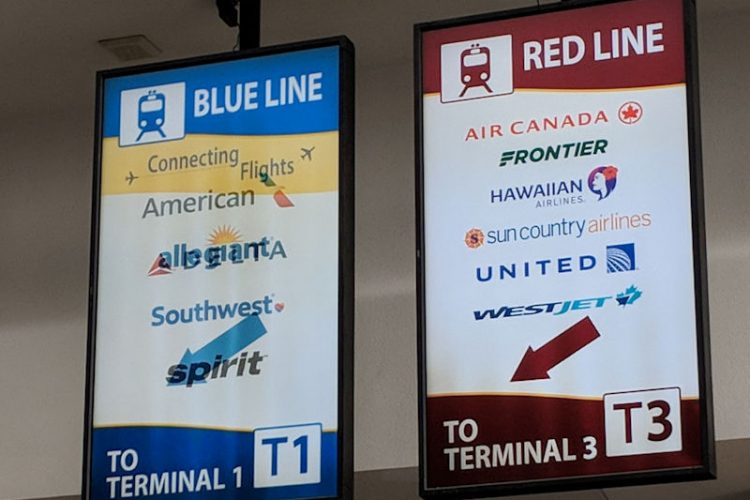 この問題に関してはこれまでにも何度か「ラスベガス大全でもきちんと告知すべき」との指摘を日系旅行業界などから受けてきたりもしたが、このたび空港管理当局もこのトラブルの頻発を問題視し、色分けでトラムに名称をつけるなど、やっと重い腰を上げ改善策に取り組み始めたので、これを機会にこの問題の背景と現場の状況をレポートしてみたい。(案内標識だけは1年以上前から色分けされていたが、トラムそのものや乗り場を色による名称で区別し、それをハッキリと可視化したのはつい最近になってのこと)