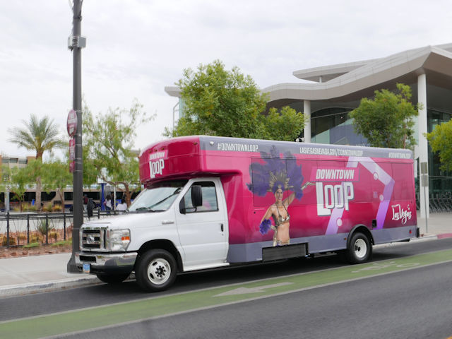 ラスベガス市議会の主導で計画されたこの 19座席の中型バスは(写真)、ダウンタウン地区に点在する7ヶ所の停車場をグルグルと巡回するかたちで走る。